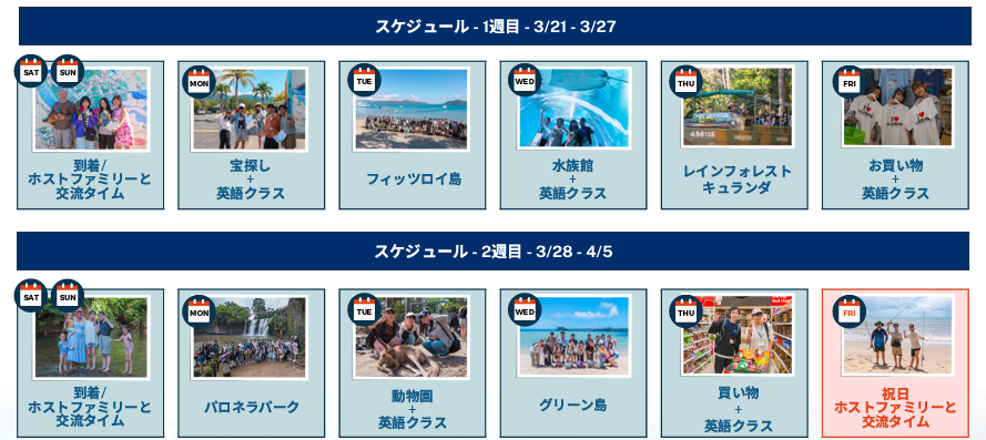 ケアンズ・春休みジュニアキャンププログラム代金